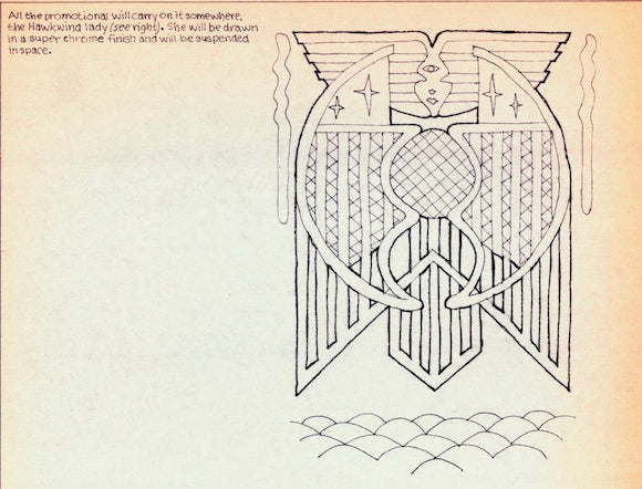 Based off of Barney Bubbles’ first draft of the Hawkwind lady logo. The final design appeared on the front of the bands 1972 album Doremi Fasol Latido.